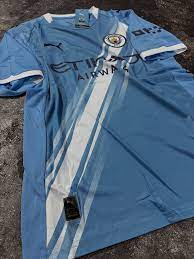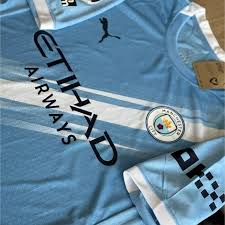 • قميص نادي مانشستر سيتي الأساسي لموسم 2025/26 من تصميم بوما.